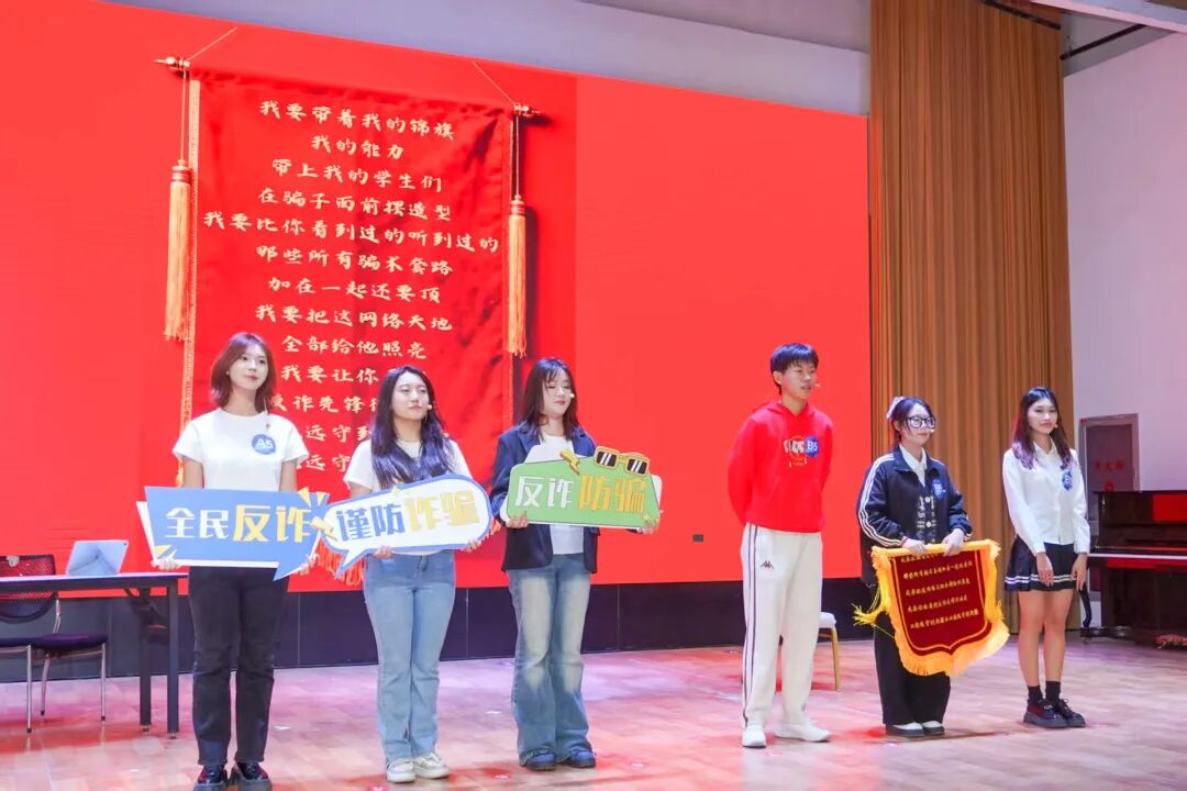 网络安全宣传作品创作环节,我院齐波雅同学紧扣“网络安全为人民”主题设计海报作品,巧妙融合了网络与潮流元素,以生动视觉语言传递网络安全知识。诱诈反诈情景剧演绎中,我院团队饰演“诱诈组”,通过假冒班主任、辅导员等,以开学缴班费在假班级群里诱导新生,使观众深刻地学到了防范诈骗的知识,赢得了满堂喝彩!