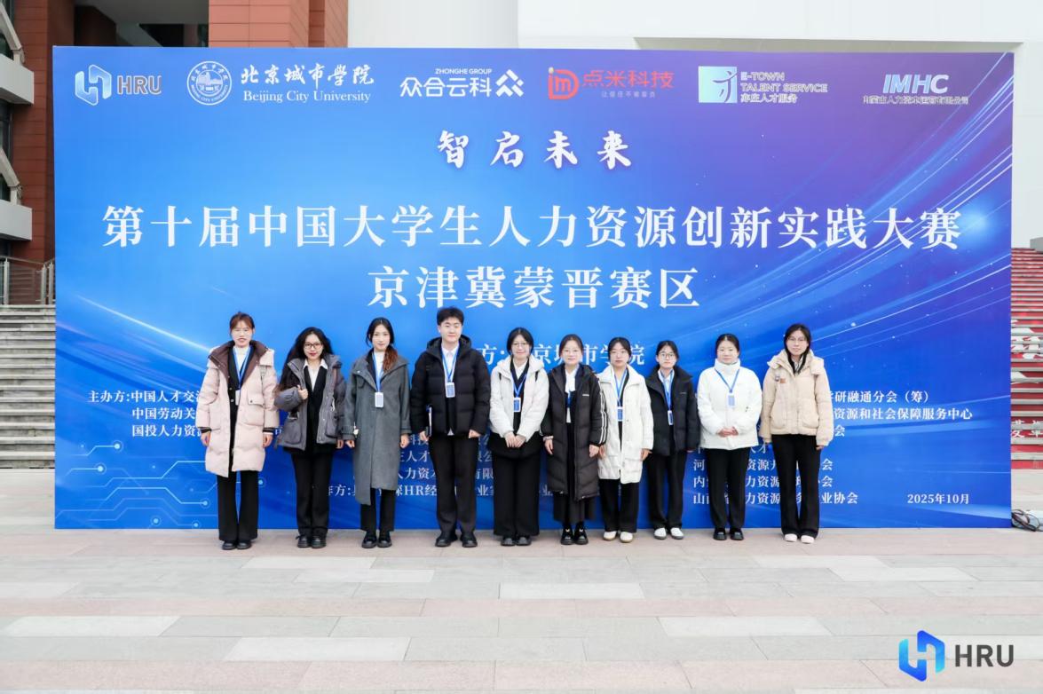 第十届HRU是人力资源管理领域极具影响力的全国性赛事,本届大赛以“智启未来”为主题,共吸引了来自全国的300多支高校团队参赛,比赛分为“地区淘汰赛”与“全国总决赛”两个阶段(2025年9月-11月),共设HR+AI实操、实务设计、案例分析、劳动争议处理、职场实战、无领导小组讨论、企业工会与民主管理等多个赛道,全面模拟组织人力资源管理真实应用场景,大赛评委均来自著名企业的人力资源高级管理者。比赛旨在培养具备专业素养、解决实际问题和持续创新的高素质管理人才。经过激烈的角逐,仅三分之一高校团队进入全国决赛。