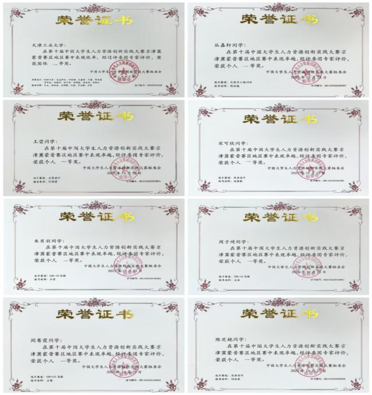 个人赛道中,屈柯沁同学荣获企业工会争议调解赛道(HR)特等奖、企业工会方案设计赛道一等奖;闫薪宇斩获企业工会争议调解赛道(调解员)特等奖;朱肖羽、周子琦、闵骞霞获HR+AI实操赛道一等奖;宋可欣、陈芝娆、王莹获实务设计赛道一等奖;丛嘉轩获评无领导小组讨论赛道一等奖;另有多名同学在劳动争议处理、案例分析等赛道荣获二等奖。本次地区赛,我校学子共收获特等奖2项、一等奖8项、二等奖若干,成功斩获地区赛团体一等奖,顺利晋级全国总决赛。