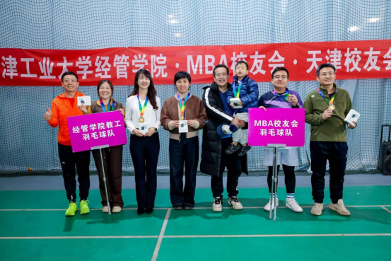 12月27日下午,由天津工业大学经济与管理学院、MBA校友会、天津校友会联合主办的乒乓球、羽毛球联谊赛在学校运动馆圆满落幕。天津校友会会长盖文卓、执行会长宣向斌及相关负责人,MBA校友会会长崔建章,学院常务副院长齐庆祝、副院长刘建准以及学院相关负责老师和参赛队员等近百人参加活动。