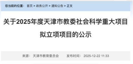 天津市教委社会科学重大项目是围绕我市高等教育“十五五”时期高质量发展的关键问题和当前急需解决的重难点问题面向全市高校发布的重大课题,旨在着力提升我市高校科研创新能力,促进我市哲学社会科学繁荣发展,服务国家和天津经济社会发展战略需要。此次课题获批,充分展现了我院教师的科研创新能力和对社会重大问题的关注与担当,标志着我院在社会科学研究的扎实功底与创新实力。