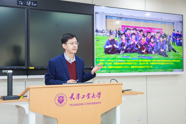 创新管理思维模块中,齐庆祝教授以《创新管理思维提升组织工作效能》为题,结合数智技术与制度创新趋势,从“管理知识-管理能力-管理思想”三阶体系,解析动态竞争环境下企业核心竞争力的构建路径,为管理者提供可持续发展的实践思路。讲座期间,齐庆祝同步开展天津工业大学 MBA 招生政策宣讲,详细介绍项目优势与报考要求,现场设置咨询环节为有意向深造的校友答疑解惑。