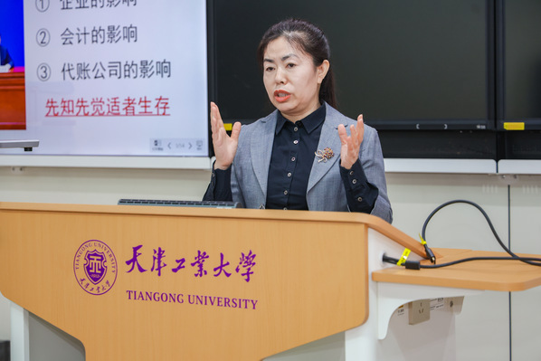为助力校友、校友企业管理者提升专业能力、把握行业前沿,由天津工业大学经济与管理学院、MBA校友会、天津校友会联合主办的“专业赋能管理 创新融合发展”管理与财税专题讲座,于2026年1月18日下午在经管学院308教室举办。讲座由经济与管理学院常务副院长齐庆祝,互联网财税平台联合创始人、天津中为财务管理有限公司创始崔桂娟,天津校友会法律服务中心副主任刘红丽担任主讲人;天津工业大学MBA校友会会长崔建章、秘书长刘伟、常务副会长王剑;天津工业大学天津校友会会长盖文卓、执行会长宣向斌、秘书长饶峥;副院长刘建准、校友负责教师马晓红;校友企业负责人、中高层管理者及财税、法务从业者等近百人参加,由2024级MBA学员刘思童主持。