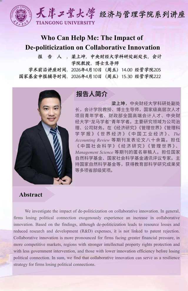 讲座通知:Who Can Help Me: The lmpact of De-politicization on Collaborative Innovation