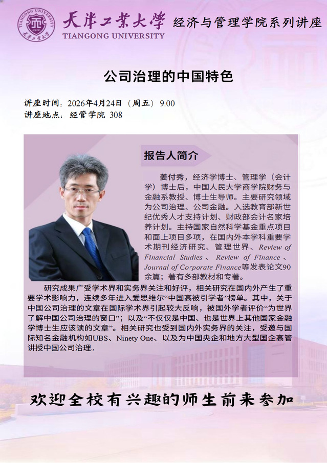 讲座通知:公司治理的中国特色